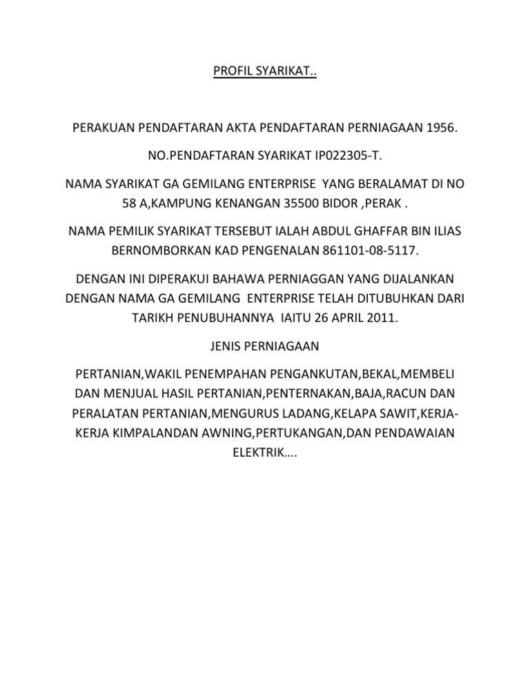 Contoh Profil Syarikat Enterprise Makanan Hassanctzx